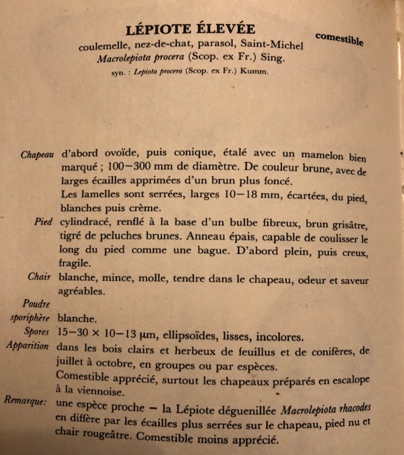 We had these mushrooms appear on the new grass area where the old concrete cattle yard used to be. They are known locally as coulemelle and are edible often being served with veal. Its always a surprise the plants that appear in newly imported soil.